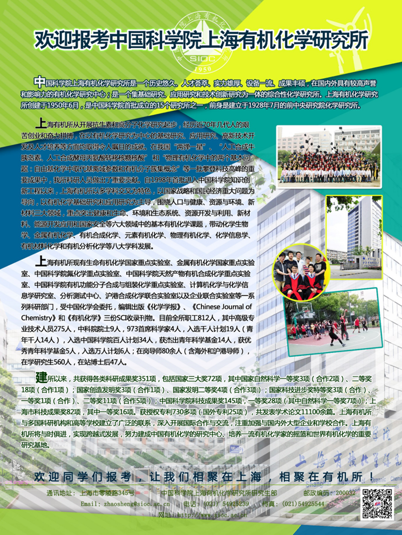 上海有机化学研究所大学生暑期夏令营定于2017年7月10至12日在上海举行。