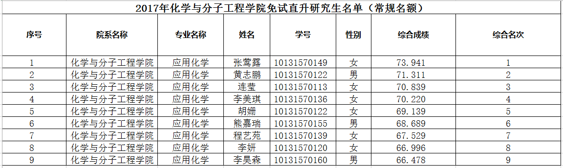 2017年色播 免试直升研究生名单(常规名额)